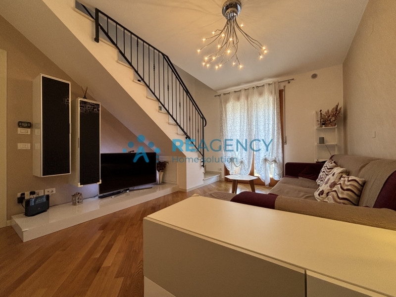 Ti presentiamo un elegante appartamento situato al primo piano di un contesto residenziale tranquillo e ben curato. L'immobile si sviluppa su due livelli, offrendo ampia e funzionale distribuzione degli spazi.accedendo all'appartamento, ti accoglie una luminosissima zona giorno composta da un soggiorno e una cucina separata, ideali per momenti di convivialità. Dalla zona giorno, si accede a un grazioso terrazzo, perfetto per momenti di relax. Completano questo livello un bagno finestrato dotato di doccia, per garantire la massima comodità. al piano superiore troviamo due spaziose camere da letto, una delle quali offre accesso diretto al terrazzo, e un'ulteriore stanza ideale come terza camera o studio. Qui si trova anche un secondo bagno finestrato, completo di vasca, perfetto per rilassarsi.l'appartamento è dotato di un garage doppio in lunghezza e di una cantina, offrendo ampie possibilità di stoccaggio e parcheggio.infine, è presente un posto auto scoperto di proprietà, che completa l'offerta di questo splendido appartamento.non perdere l'occasione di visitarlo, il luogo ideale per vivere la tua vita in tutta comodità!