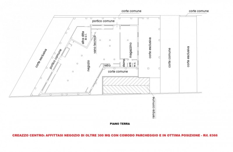 In posizione centralissima a creazzo, affittasi negozio di oltre 300 mq, con parcheggio - rif. 8366in posizione di altissimo passaggio, molto visibile, sul frequentatissimo viale italia, in contesto recente, affittasi grande negozio.sviluppato al piano terra con vetrine fronte strada e numerosi esclusivi posti auto per la clientela.vi aspettiamo per una visita e per fornirvi i dettagli!agenzia vicenza sas di marchetti andreavia legione antonini, 146 vicenza alla borsa immobiliare della c.c.i.a.a. Di vicenza
