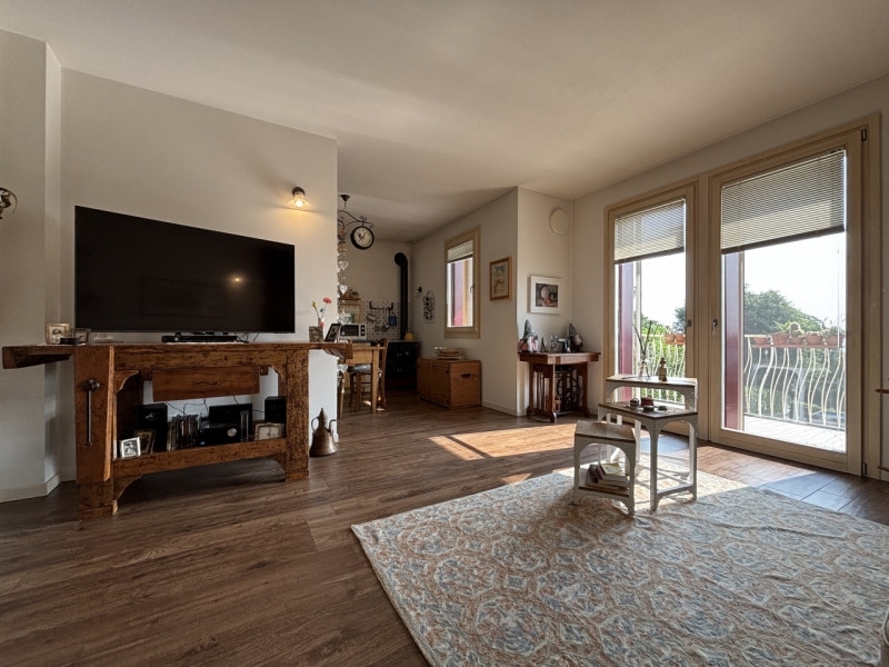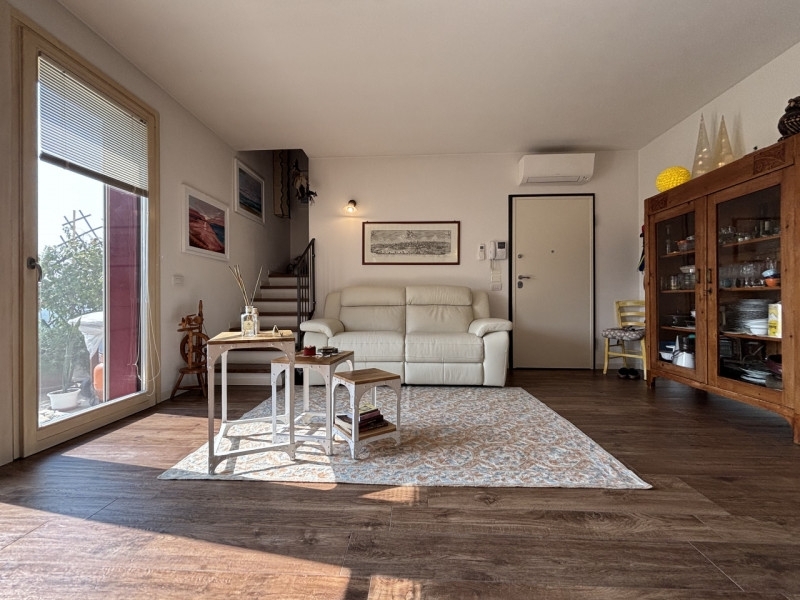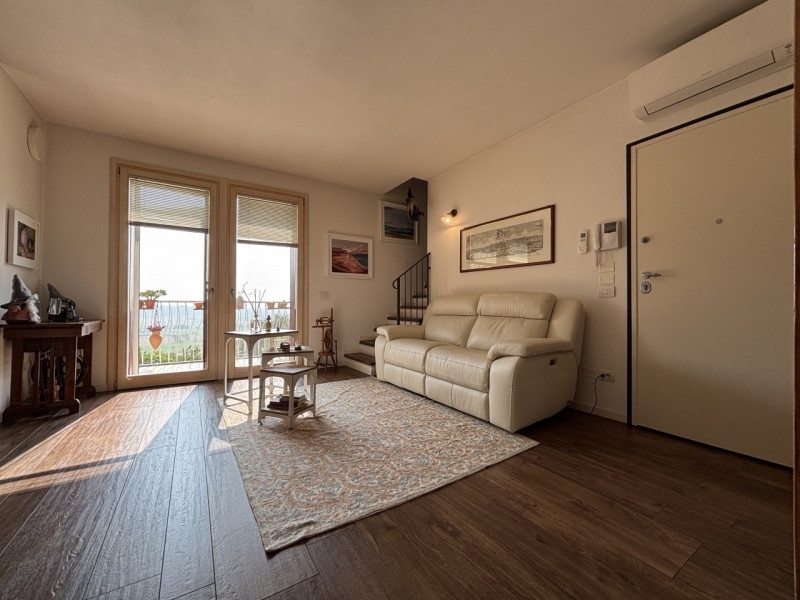 Se cerchi una casa comoda, luminosa e con vista panoramica, questa soluzione fa al caso tuo! situato in una piccola palazzina di sole quattro unità, l'appartamento si sviluppa al primo e ultimo piano, offrendo privacy e tranquillità.entrando, ti accoglie un ampio soggiorno con cucina a vista, perfetto per momenti di convivialità. Dal soggiorno si accede a un terrazzo spazioso, con una vista panoramica mozzafiato, ideale per pranzi all'aperto o semplicemente per godersi il panorama. Questo terrazzo può essere facilmente attrezzato con un camino, creando un angolo accogliente e caldo nelle stagioni più fredde.dal soggiorno, tramite una scala, si raggiunge il piano mansardato, che può essere utilizzato come spazio extra, studio o zona relax, offrendo ulteriori possibilità di personalizzazione.la zona notte comprende due camere da letto, entrambe luminose e confortevoli, collegate da un terrazzo che permette di godere di un ulteriore spazio esterno.il bagno principale, finestrato, è dotato di doccia, mentre un secondo bagno, pratico e funzionale, può essere utilizzato anche come lavanderia.al piano interrato, trovi un garage doppio in lunghezza, che offre spazio ampio e comodo per due auto e altro stoccaggio.l'appartamento beneficia anche di un impianto fotovoltaico a livello condominiale, contribuendo a ridurre i costi energetici e a vivere in modo più sostenibile.una soluzione ideale per chi cerca un'abitazione moderna, con ottime finiture, vista panoramica e un contesto tranquillo. Contattaci per maggiori dettagli o per organizzare una visita!
