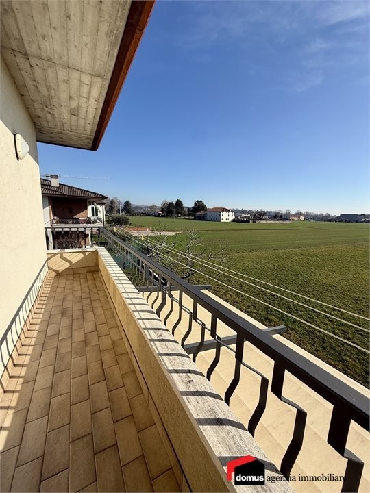 Thiene: inserito in una zona residenziale chiusa al traffico, vendesi spazioso e luminoso appartamento tricamere completamente indipendente, sito al piano primo ed ultimo in una palazzina di 4 unità abitative. Ingresso indipendente al pian terreno con ampia area esterna privata pavimentata, e porzione di terreno retrostante.nottima esposizione con vista aperta, senza edifici ravvicinati, con piacevole vista sui terreni agricoli vicini.nal piano primo si sviluppa l'appartamento con accesso tramite scala interna, luminosa zona giorno open space con cucina a vista e accesso al poggiolo, tre camere da letto, ripostiglio e bagno finestrato.nal piano interrato garage doppio con nuovo basculante motorizzato.nin aggiunta, ampia area sfruttabile come altro garage o taverna con lavanderia e secondo servizio con doccia, accessibile da scala interna.