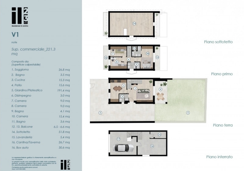 un progetto esclusivo che unisce stile liberty, comfort moderno e massimo efficientamento energetico: mini appartamenti, appartamenti con giardino, attici esclusivi e tre villette privatese quello che stai cercando è una villetta con giardino, ingresso indipendente e comfort moderni abbiamo la soluzione perfetta per te!la proprietà comprende al piano terra la zona giorno in open space dalla quale si accede direttamente al giardino di circa 200mq ed un piccolo bagno ospiti, al piano primo sono presenti tre camere da letto, ideali per famiglie o per chi desidera spazio in più e due comodi bagni. Al piano superiore è presente una spaziosa stanza, spazio molto versatile che può essere utilizzato in diversi modi, a seconda delle esigenze e delle preferenze.al piano interrato si trovano una taverna accogliente e una lavanderia funzionale, ideali per il tempo libero e la gestione della casa. Completa l'offerta un garage doppio, che garantisce spazio e comodità per due veicoli. Una soluzione ideale per chi cerca indipendenza, spazio e comfort in un contesto pratico e ben organizzato!un'opera di riqualificazione urbana che ridona vita a una prestigiosa villa liberty trasformandola in una residenza dallo stile unico e raffinato, contornata da tre nuove villette.contattaci subito per maggiori informazioni e per prenotare una visita. Siamo pronti ad aiutarti a realizzare i tuoi obiettivi immobiliari con professionalità e passione.