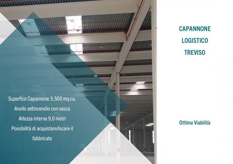 Rif. D139b (per info fabrizio)capannone logistico - treviso, forma regolare, uso magazzino o logistica, con bocche di carico, portoni a raso, inserito in ampia area industriale. Pavimentazioni 6 ton/mq, h=9 m sotto trave, piazzali di manovra. Area di pertinenza del complesso logistico completamente recintata, presenza di anello antincendio con vasca.immobile non soggetto a certificazione energetica (casi previsti dal decreto interministeriale del appendice a: casi di esclusione dall'obbligo di dotazione ape)per maggiori informazioni contattaci, senza impegno, telefonicamente, via mail o attraverso il modulo di richiesta.ti saranno inviate le informazioni richieste entro 24 ore.solo valori srlborgo treviso, 6/a31033 castelfranco veneto (tv) : fabrizio